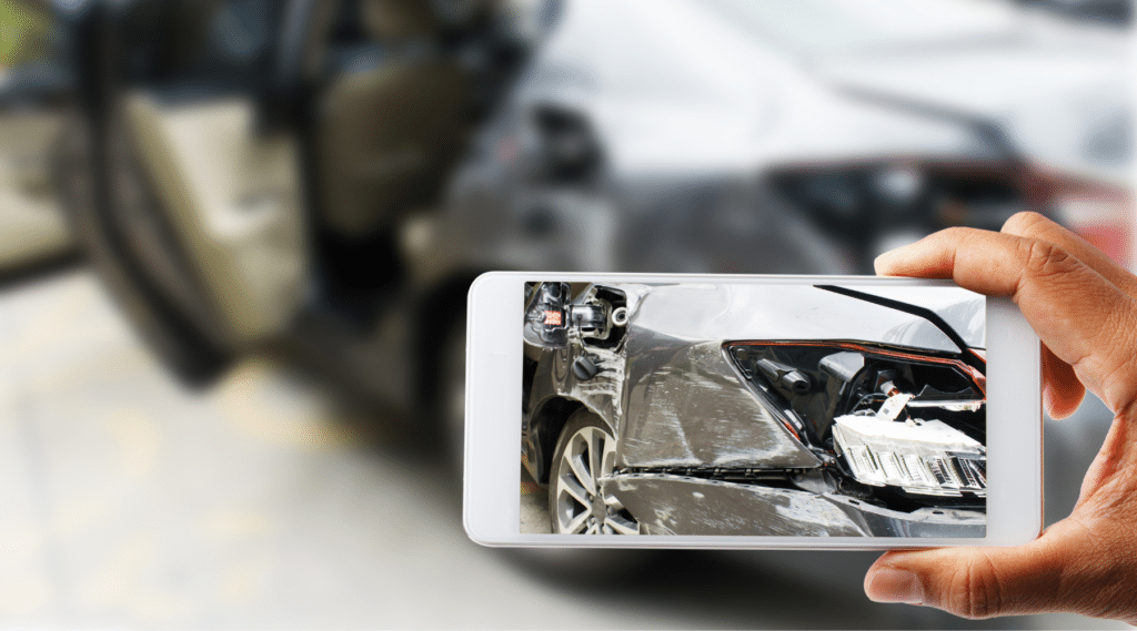 Sin embargo, mientras esperas, es aconsejable recopilar tanta información como pueda. De ser posible, tome fotos del lugar del accidente inmediatamente (si es seguro salir de su vehículo), antes de que los vehículos sean trasladados a un lado de la carretera. Asegúrese de obtener imágenes de cualquier daño a los vehículos, toda la escena y marcadores de identificación como señales de tráfico.